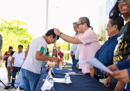 El secretario del Humanismo, Paco Chacón, realizó la entrega de 1,252 pares de tenis escolares a estudiantes de las primarias “Voz de mi Patria” y...