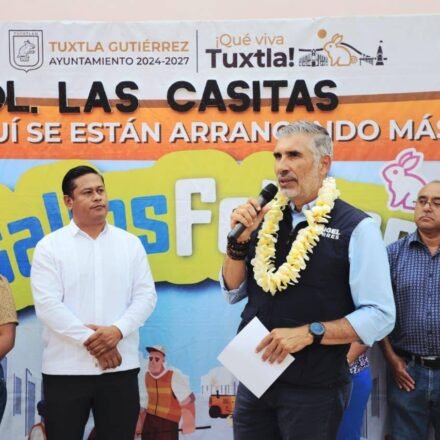 El presidente municipal de Tuxtla Gutiérrez, Ángel Torres, dio el banderazo de inicio a los trabajos de pavimentación de la calle 7 en la colonia Las...