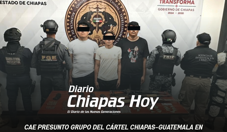 Detiene SSP y FGE en Arriaga a presuntos integrantes del Cártel Chiapas-Guatemala.