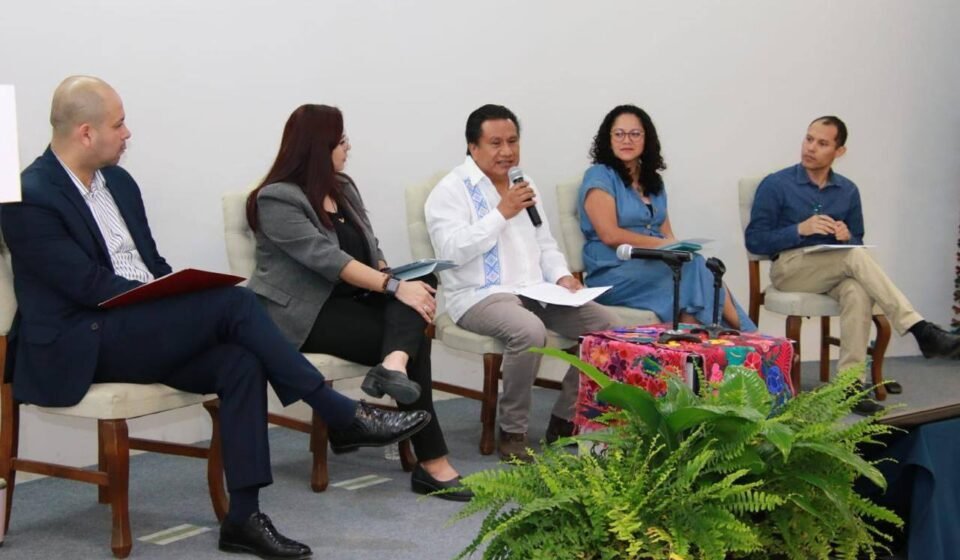 “Debemos trabajar para comprender y trazar rutas que nos conduzcan al Buen Vivir a través de una prosperidad compartida. Esta unión de saberes nos abre nuevas formas de concebir el mundo. Eso es lo que buscamos hoy: repensar, desde nuestros contextos contemporáneos, la vida cotidiana”, señaló Enrique Pérez López, escritor, investigador y traductor tsotsil, además de secretario académico de la UNICACH y moderador de la mesa de trabajo.