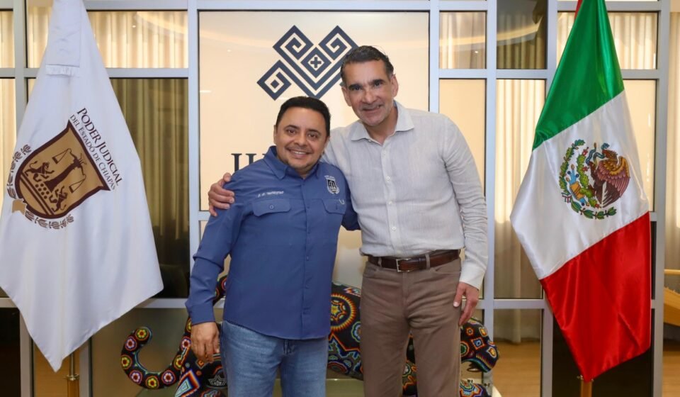 El magistrado presidente del Tribunal Superior de Justicia y del Consejo de la Judicatura del Estado, Juan Carlos Moreno Guillén, sostuvo una reunión de trabajo con el senador Luis Armando Melgar Bravo, en las instalaciones de la sede judicial en Tuxtla Gutiérrez.